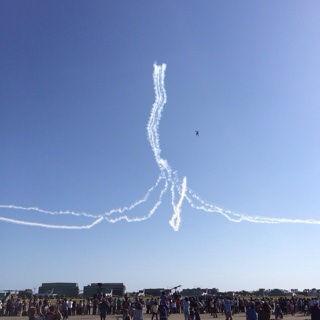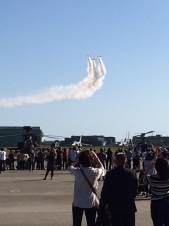 浜松基地の上空は近年ではかなり久しぶりに、雲がほとんどなく、まさに快晴だったこともあり、ブルーインパルスの編隊飛行やアクロバット飛行の素晴らしい演出と白いスモークがきれいにいつまでも空に残っているのが印象的でした。