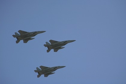 日本の主力戦闘機のF15イーグルが13時半頃から迫力ある展示飛行を行う予定です。